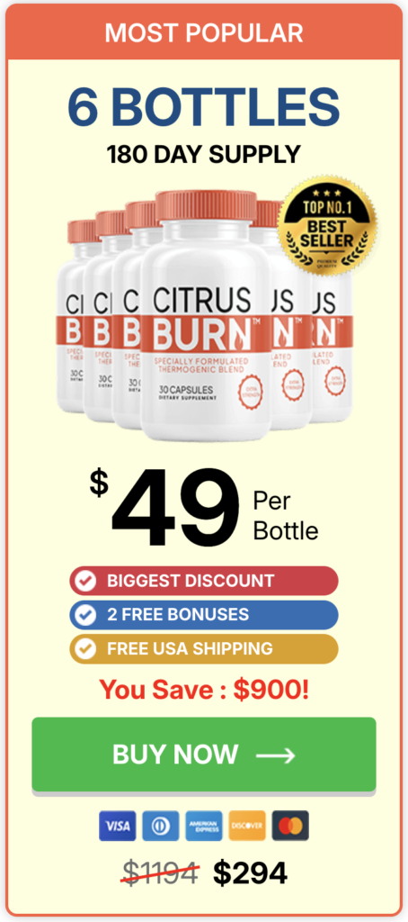 Scroll down, choose your preferred package (we recommend 6 bottles for best results), and complete your order through our secure checkout. Your CitrusBurn™ supply will be shipped to your door right away, it’s that simple.